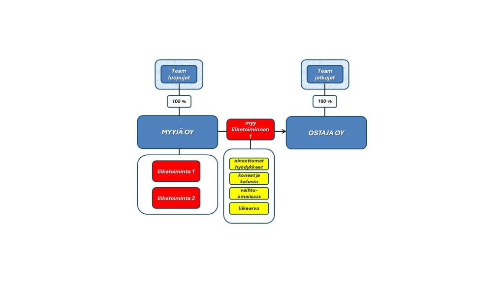 Liiketoimintakaupassa ostaja ja myyjä sopivat, mikä osa yhtiön liiketoiminnasta ja omaisuudesta siirtyy kaupan yhteydessä. Tällöin voidaan jättää kaupan ulkopuolelle sellainen liiketoiminta, joka ei ostajaa kiinnosta. Samoin voidaan sopia, että liiketoimintaan kuulumaton omaisuus jää myyjän omistukseen. Jos myyjäyhtiö omistaa toimitilat, joissa liiketoimintaa harjoitetaan, mutta ostaja ei halua sitoa pääomaa ”seiniin”, on toimitilat mahdollista jättää kaupan ulkopuolelle ja tehdä vuokrasopimus, jolla ostaja vuokraa tilat käyttöönsä.