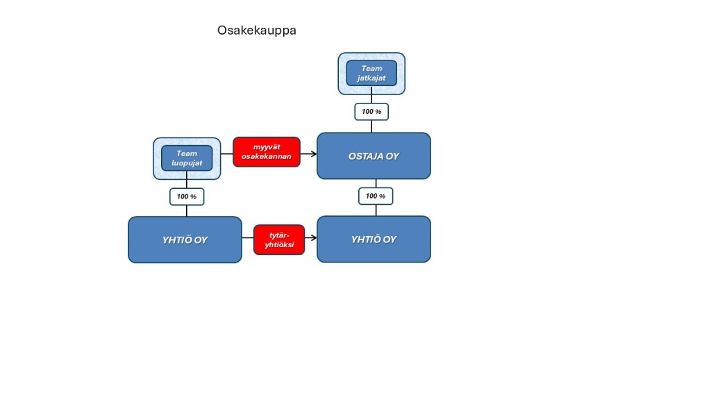 Osakekaupassa kannattaa huomioida omistuksen muutoksen vaikutus tappioiden vähentämiseen: jos yli puolet yhtiön osakkeista vaihtaa omistajaa tappiovuonna tai sen jälkeen, menetetään lähtökohtaisesti tappioiden vähennysoikeus, ellei vähentämiseen saada lääninverovirastolta haettavaa poikkeuslupaa.